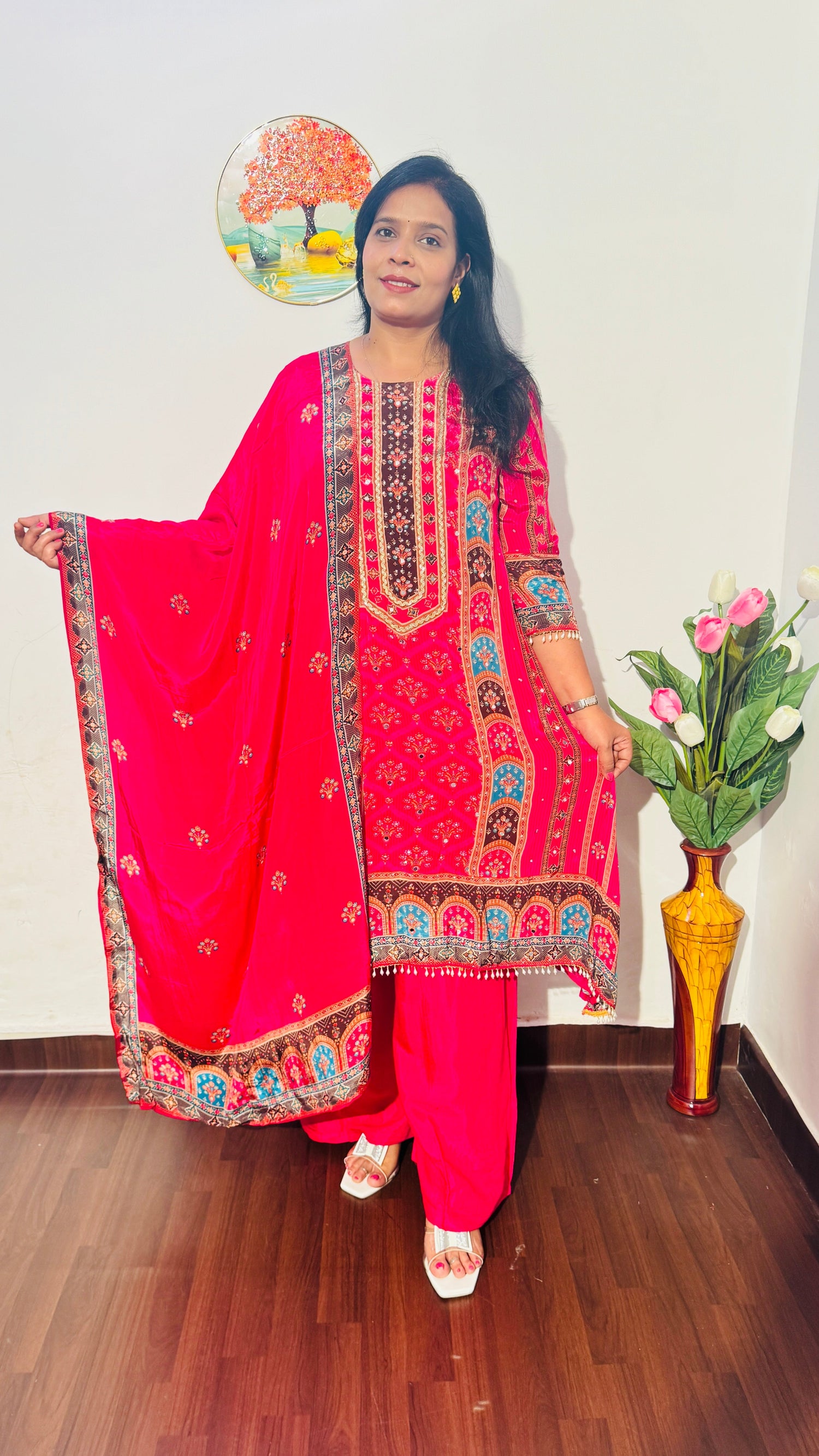 RANI PINK RAYON EMBROIDERED SUIT SET