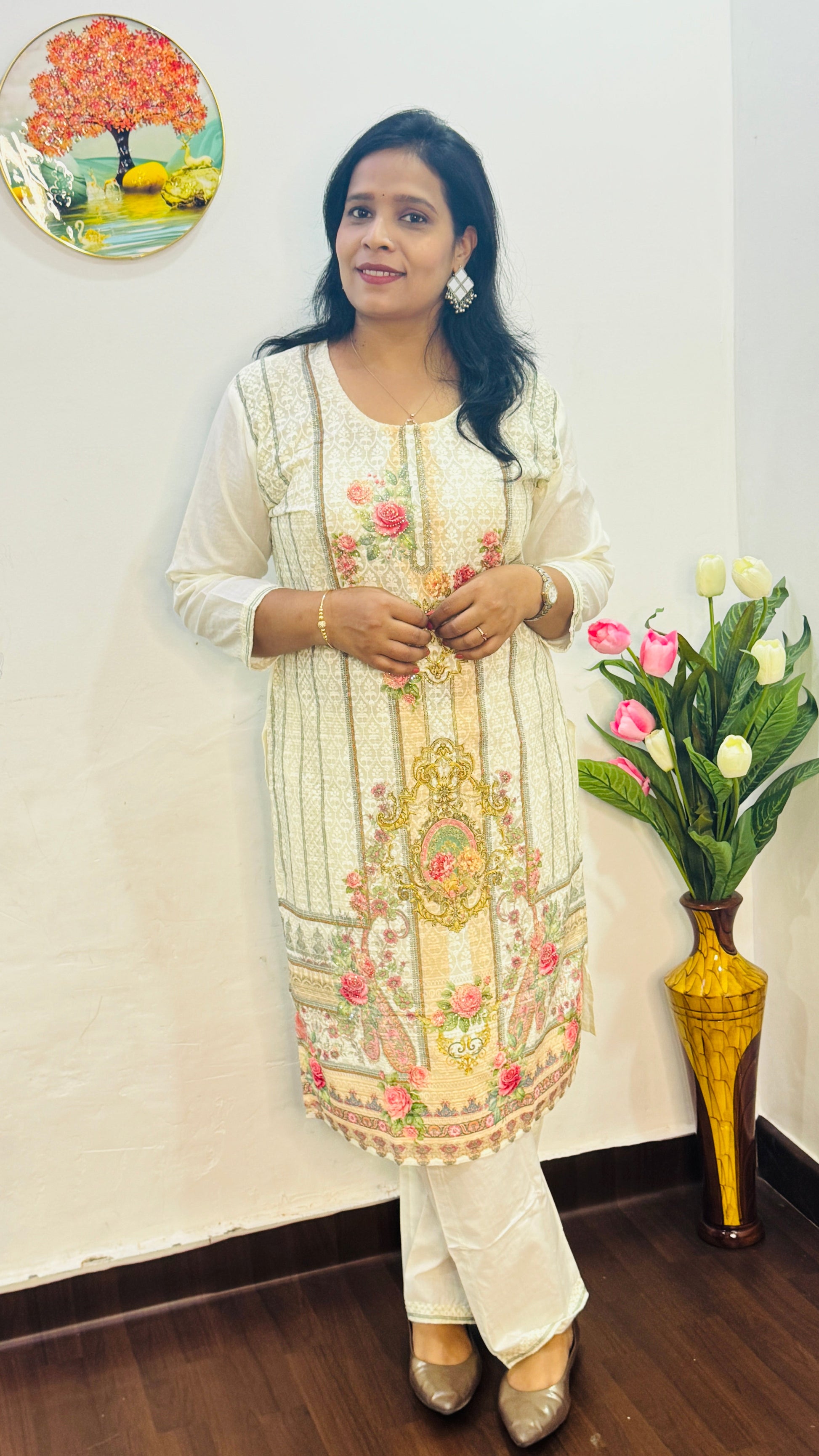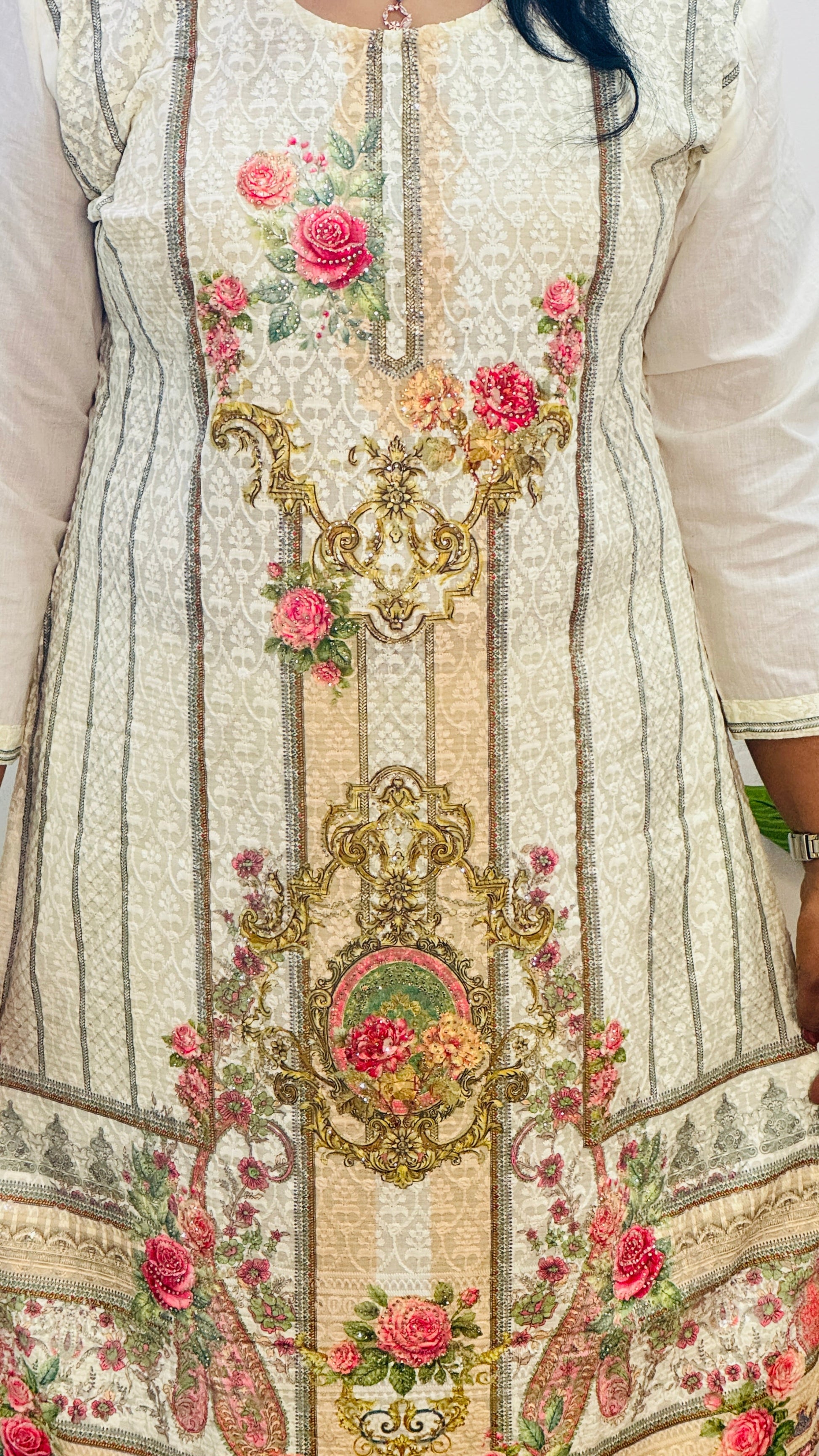 Design: Straight printed kurta with intricate floral patterns on the daman