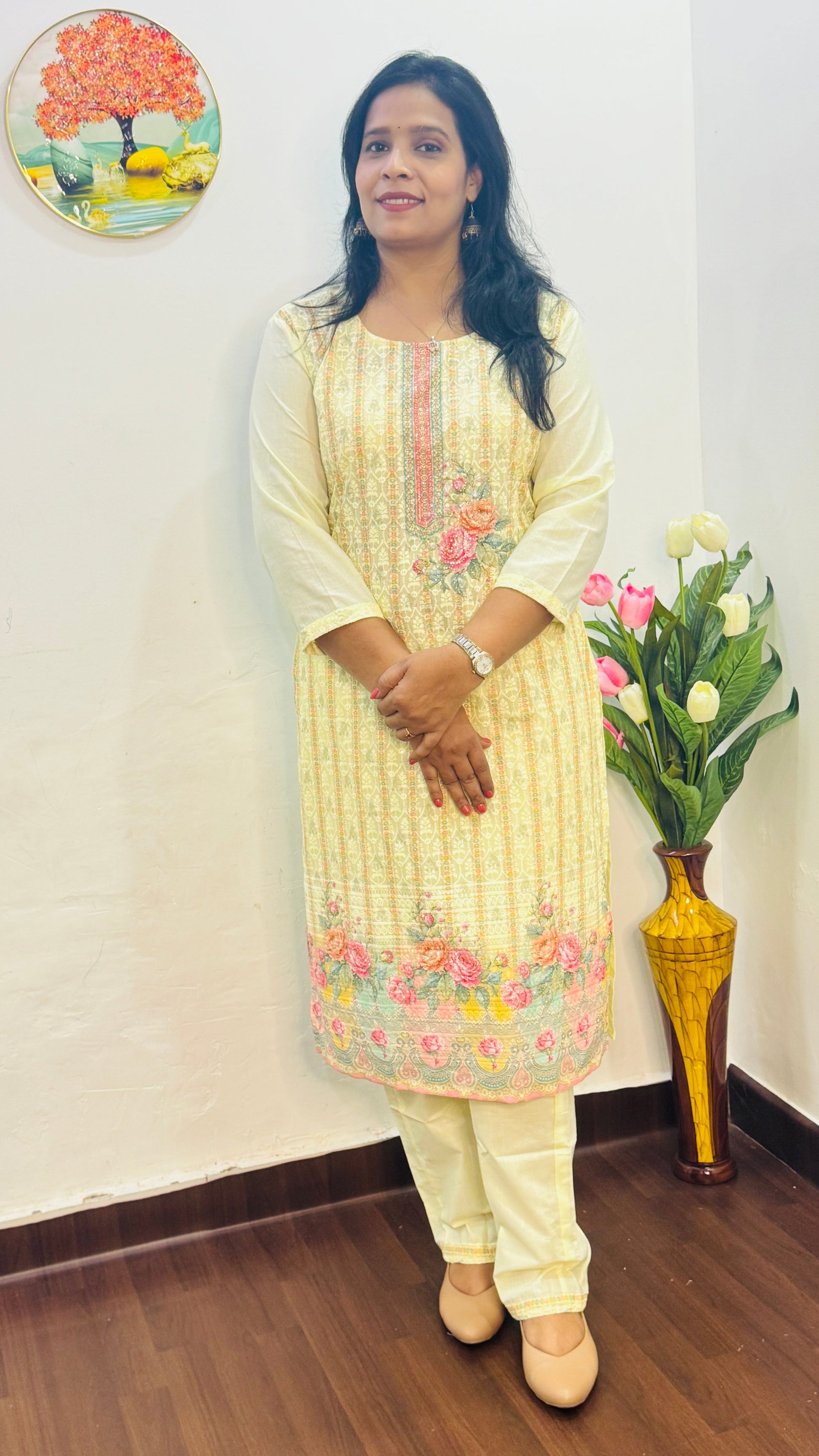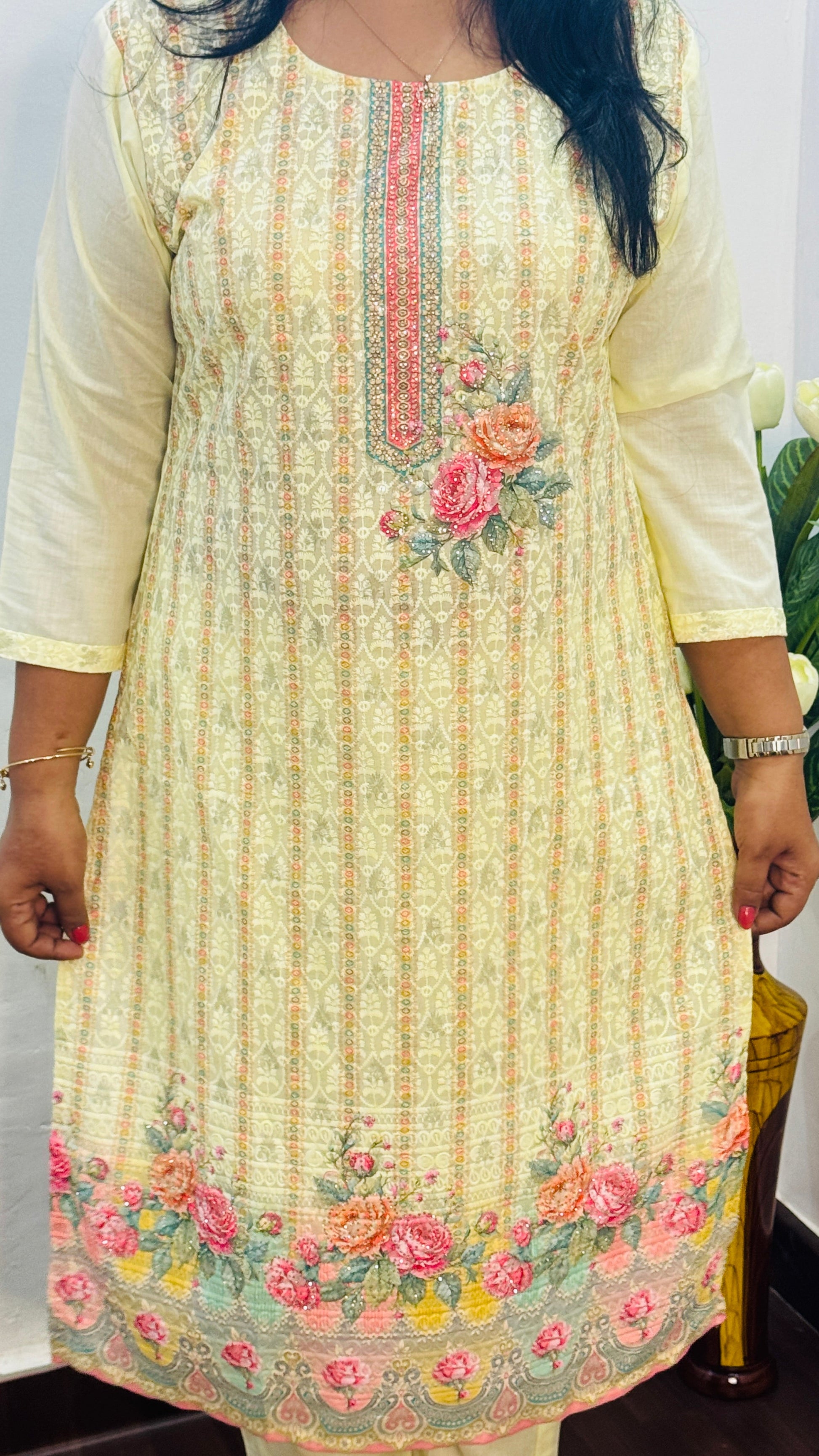 COTTON SIFLY LEMON YELLOW SUIT SET WITH BEADS WORK |BHAVIAURA
