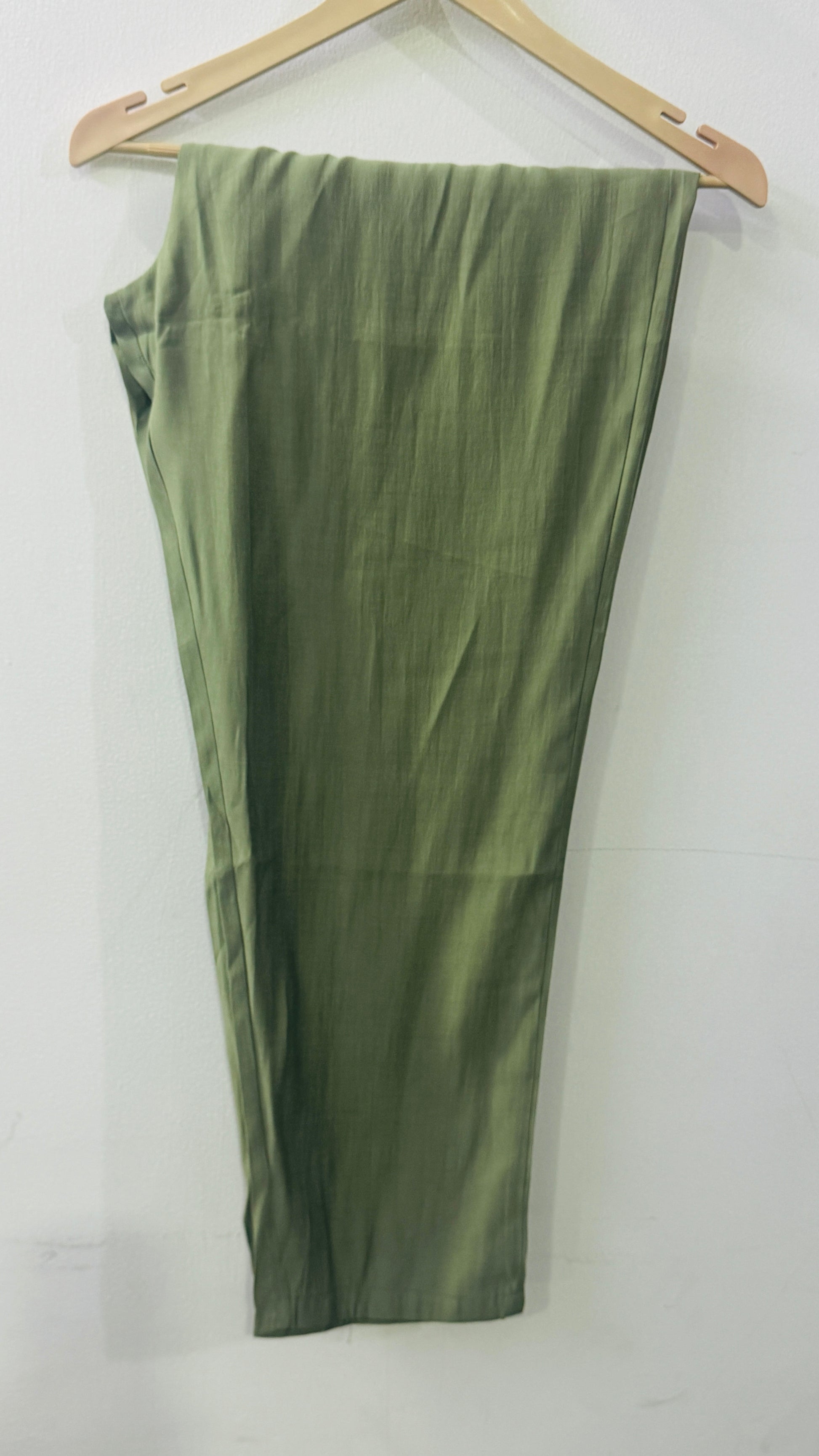 Elevate your everyday style with this beautifully crafted Olive-Green embroidered kurta and pant set. The kurta features a flattering straight cut with a V-neckline adorned with intricate thread embroidery, adding a touch of grace. The soft, lightweight fabric ensures all-day comfort, while the 3/4th sleeves provide an elegant and modest look. Paired with matching straight-fit bottoms, this set is ideal for workwear, festive gatherings, and casual outings.