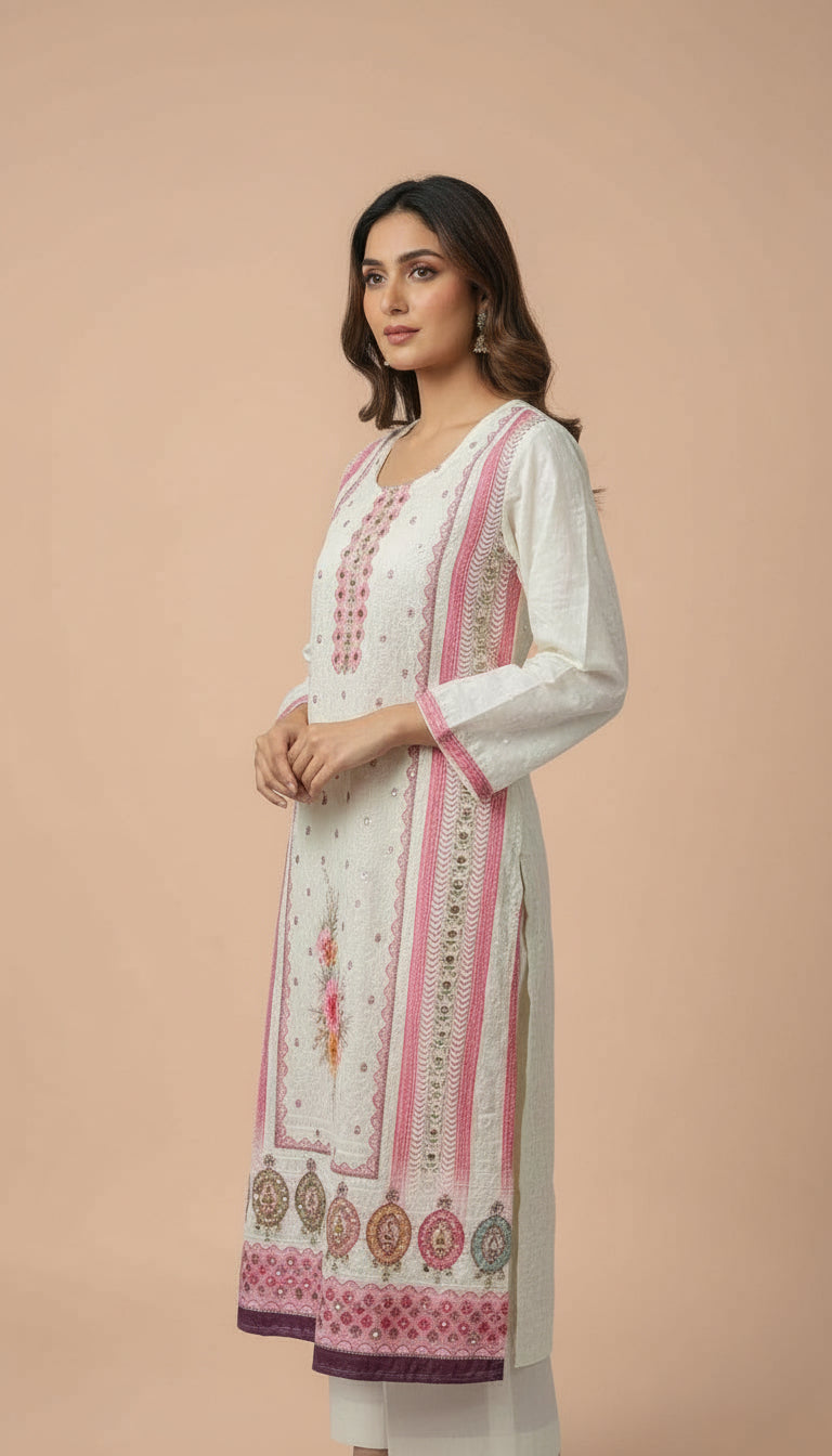 Embellishment: Beautiful bead work with Floral embroidery in white & wine pink tones on Kurta for a touch of sophistication ,